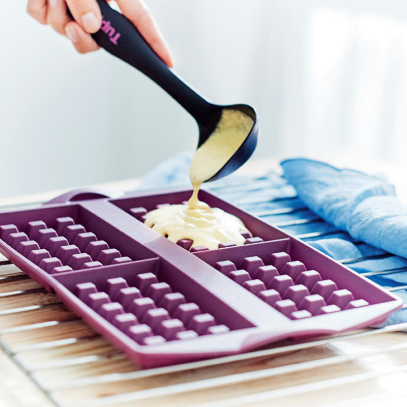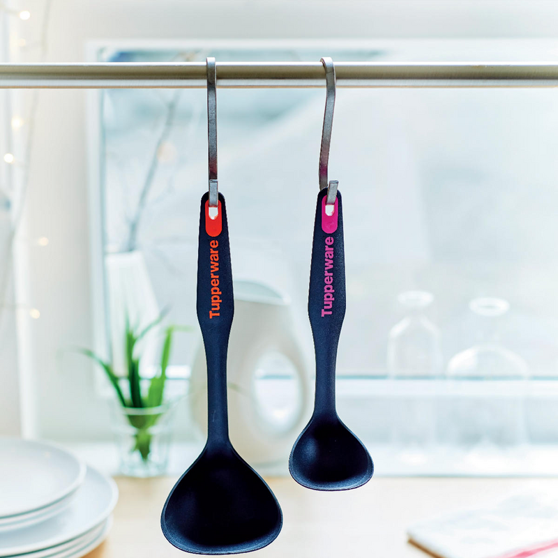 Za kuhinjske pripomočke Tupperware® je značilen ergonomski, lahek, robusten in nedrseč oprijem ter jih lahko uporabljajo tako desničarji kot levičarji. Poleg tega vam različne barve logotipa omogočajo enostavno prepoznavanje pripomočka, ki ga potrebujete, ne glede na to, ali ga imate obešenega v kuhinji, shranjenega v predalu ali na površini.